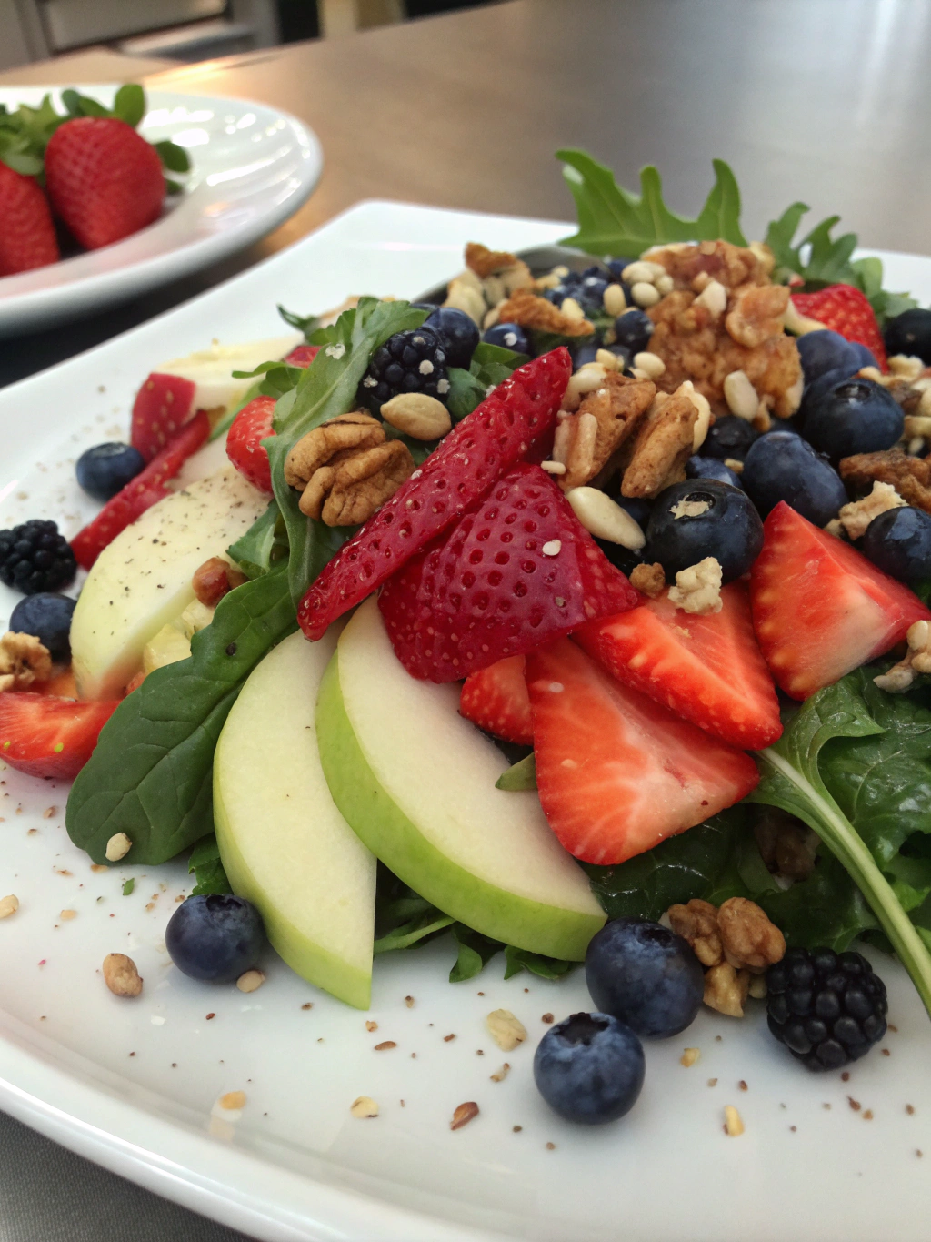 This salad is a great source of vitamins A and C, as well as antioxidants from the berries. Studies show that a diet rich in fruits and vegetables can significantly reduce the risk of chronic diseases.